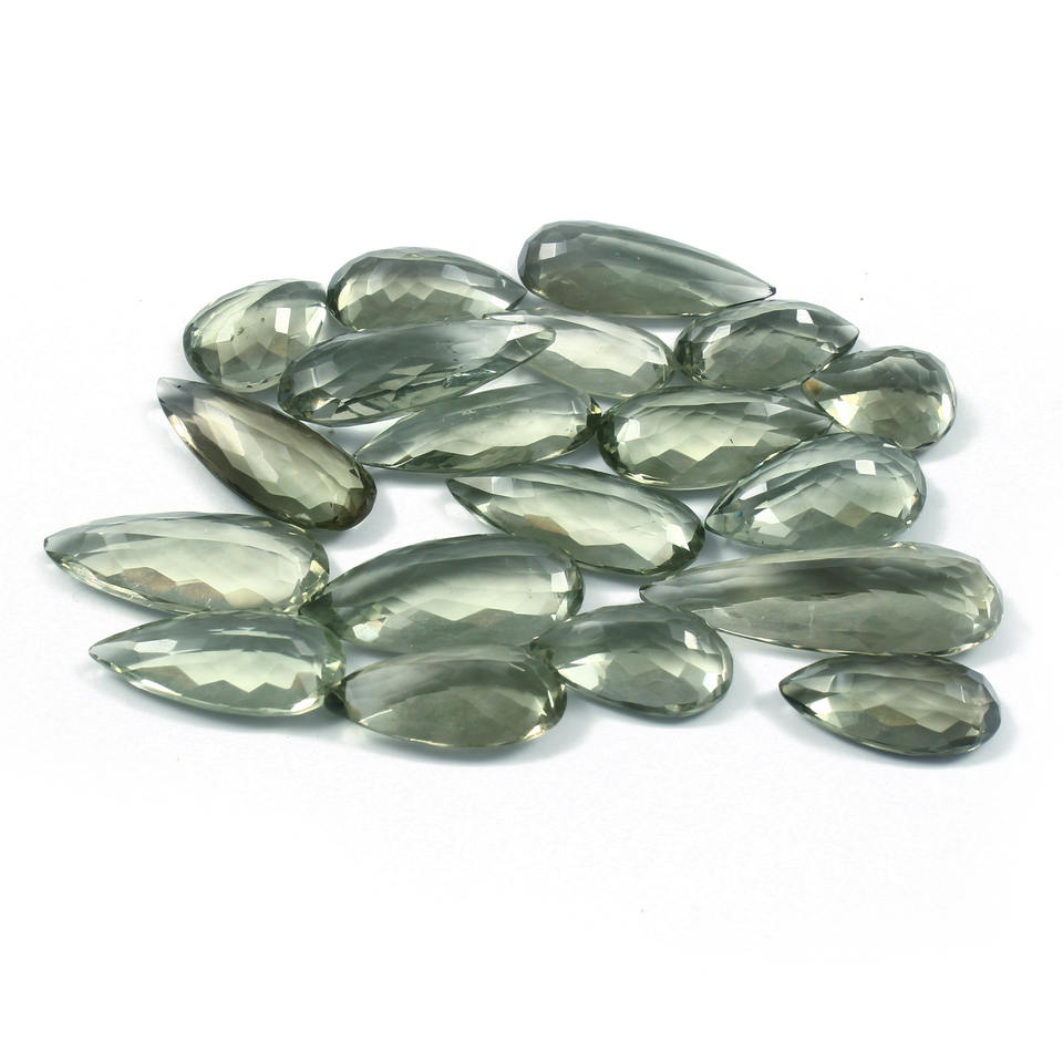 พลอยอเมทิสต์สีเขียวธรรมชาติขนาด16-38มม. 28ชิ้นอัญมณีหลวม