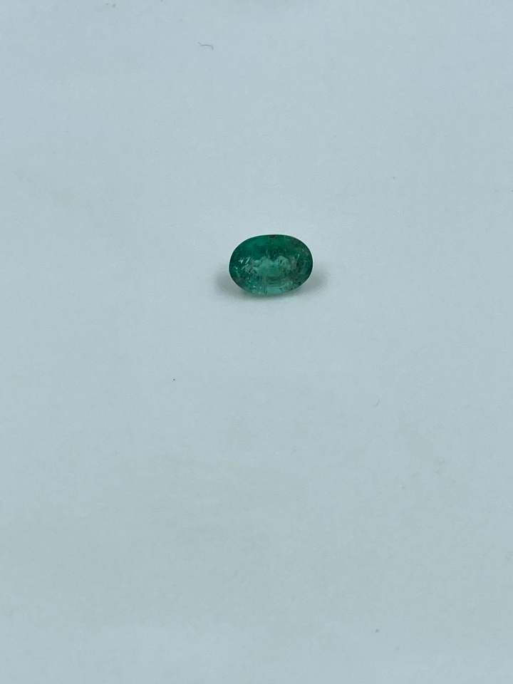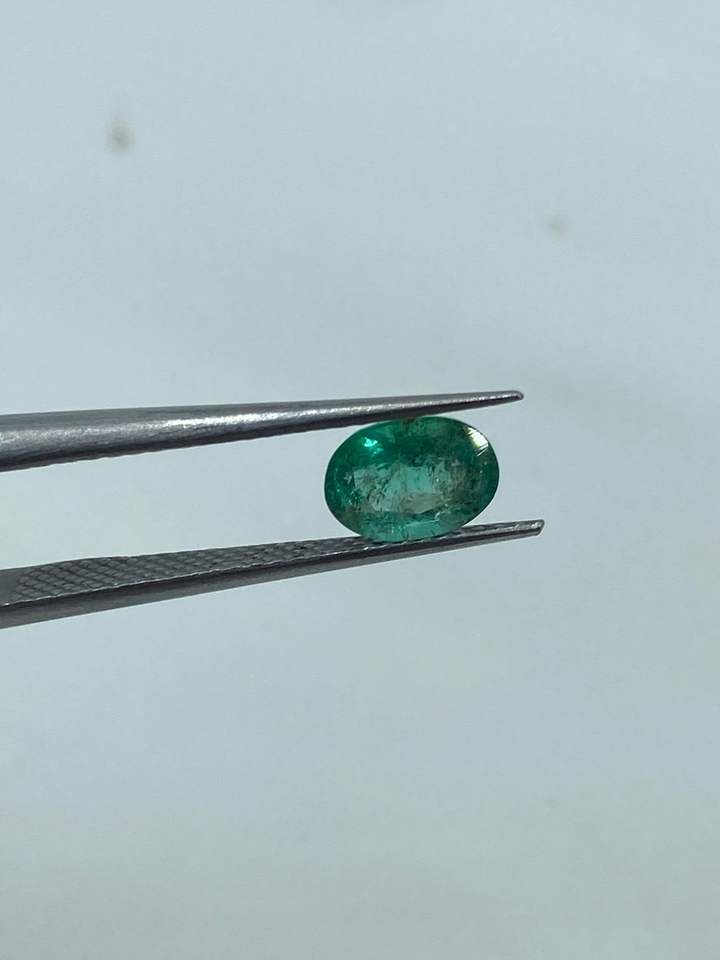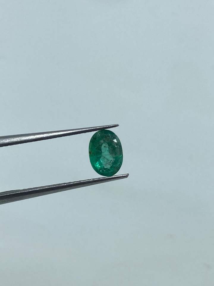 พลอยมรกตธรรมชาติคุณภาพสูงจากแซมเบีย รูปทรงวงรีขนาด 5x7 มม. น้ำหนัก 0.70 กะรัต