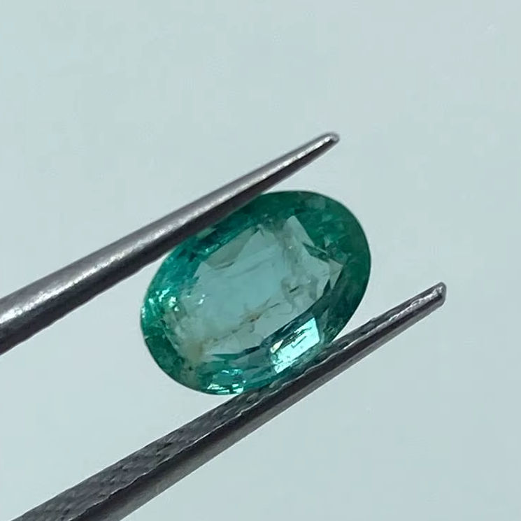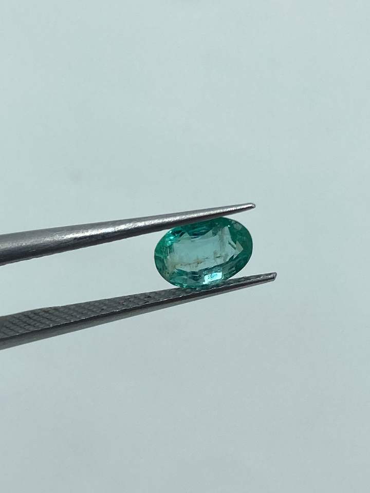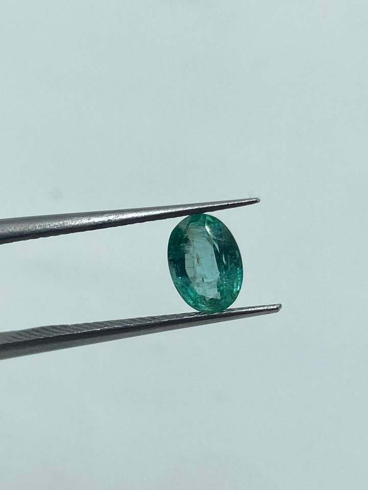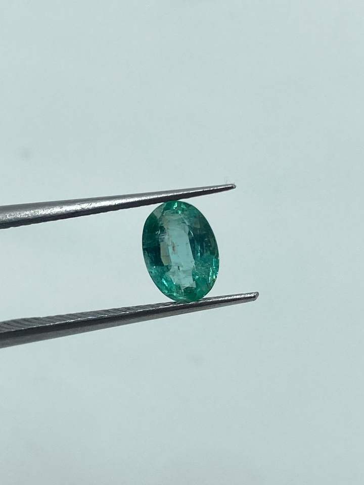 พลอยมรกตธรรมชาติคุณภาพสูงจากแซมเบีย รูปทรงวงรี ขนาด 5.20x7.20 มม. น้ำหนัก 0.95 กะรัต