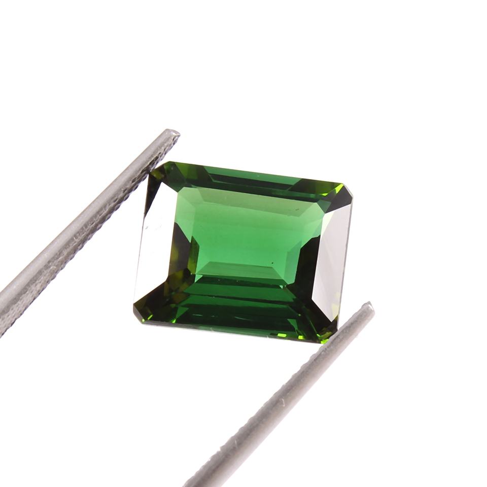 พลอยทัวร์มาลีนสีเขียวธรรมชาติคุณภาพสูง ทรงมรกตเจียระไน ประกายรุ้ง ขนาดปรับแต่งได้ รับรองโดย IGI
