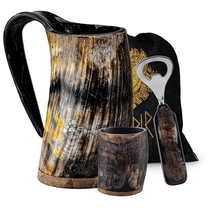 แก้วน้ำทำมือจากเขาสัตว์คุณภาพสูงจากอินเดีย ผิวเรียบเนียนขัดเงา พร้อมหูจับที่สะดวกสบาย เหมาะสำหรับดื่ม