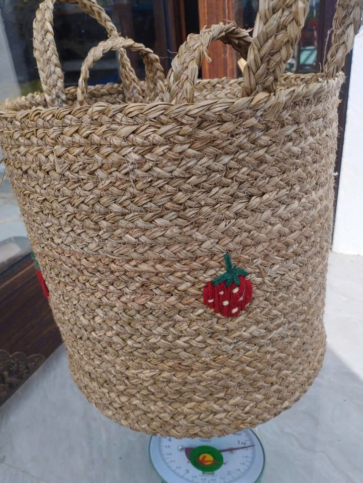 กระเป๋าฟางใบใหญ่ลายหญ้าทะเลสานด้วยมือธรรมชาติ
