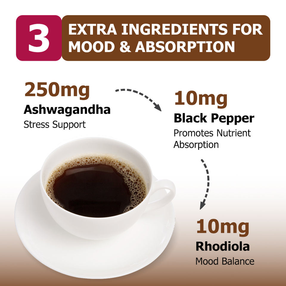 ส่วนผสมหลัก:ส่วนดอกเห็ด, สารสกัดจากรากอัชวกันดา, สารสกัดจากรากโรดิโอลา