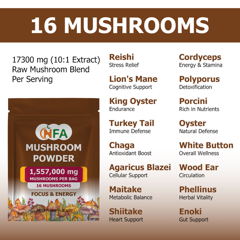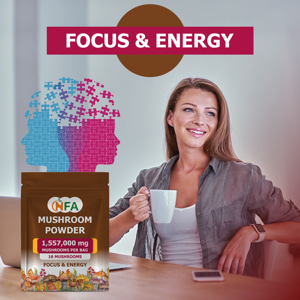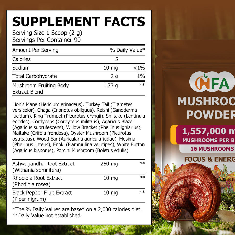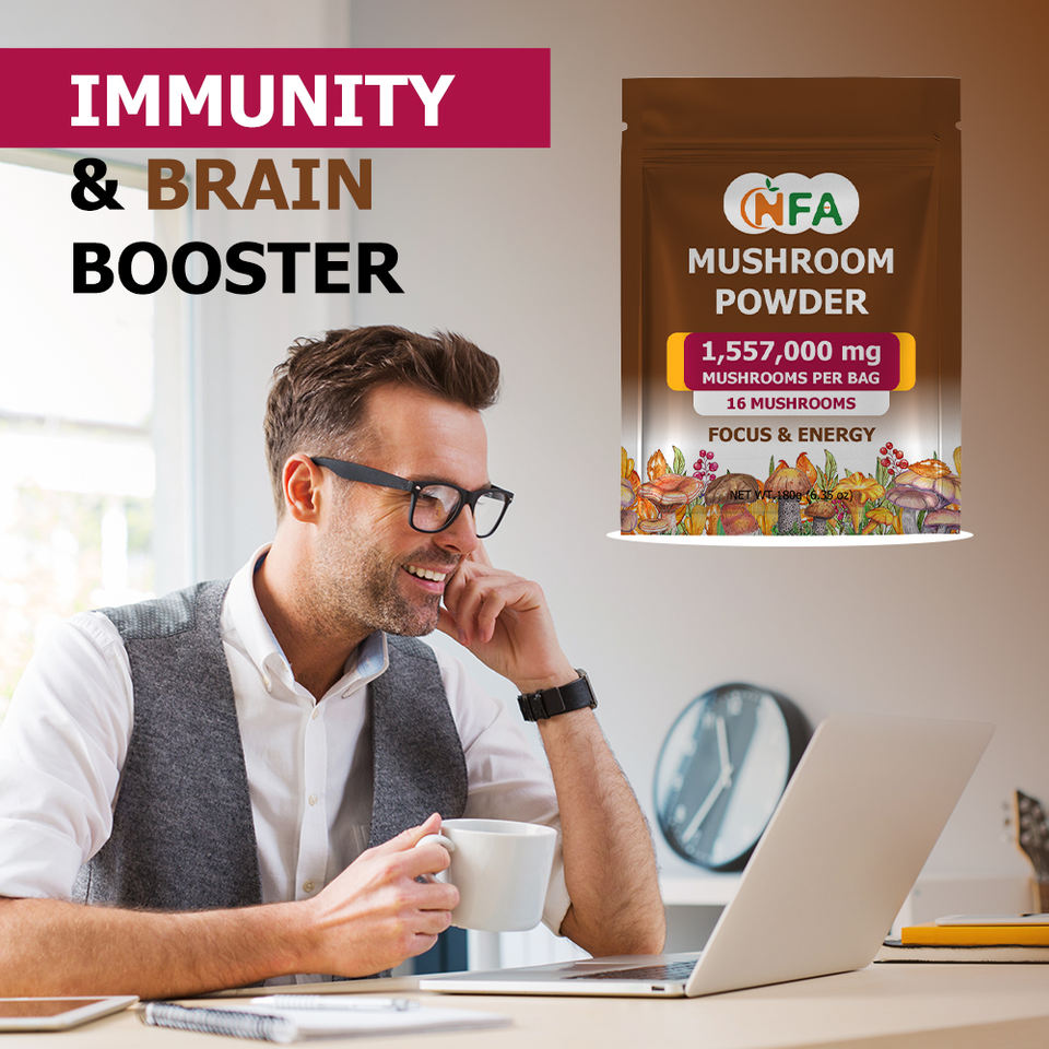 ผงเห็ดสมุนไพรธรรมชาติคุณภาพสูง พร้อมเนื้อเห็ดที่ช่วยเสริมภูมิคุ้มกัน บำรุงสมอง เพิ่มสมาธิ และพลังงาน