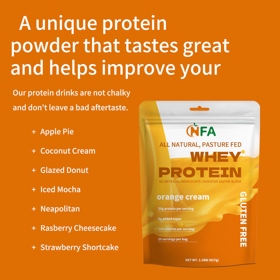 ผงโปรตีนเวย์สมุนไพรธรรมชาติพร้อมครีมส้มรองรับพลังงานเสริมความแข็งแรงและอาหารเสริมเพื่อสุขภาพ