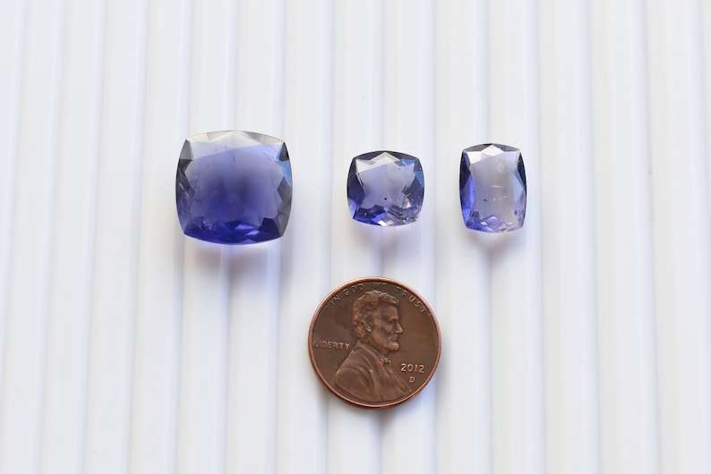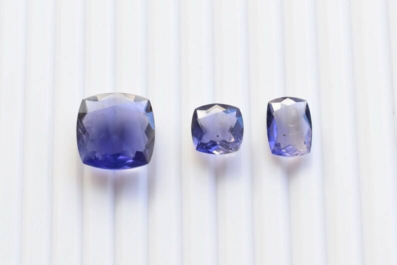 พลอยไอโอไลต์สีน้ำเงินธรรมชาติคุณภาพสูง รูปทรงผสม ตัดเหลี่ยมแบบตาแมว ได้รับการรับรองจากผู้ตรวจสอบบุคคลที่สาม สำหรับทำเครื่องประดับ