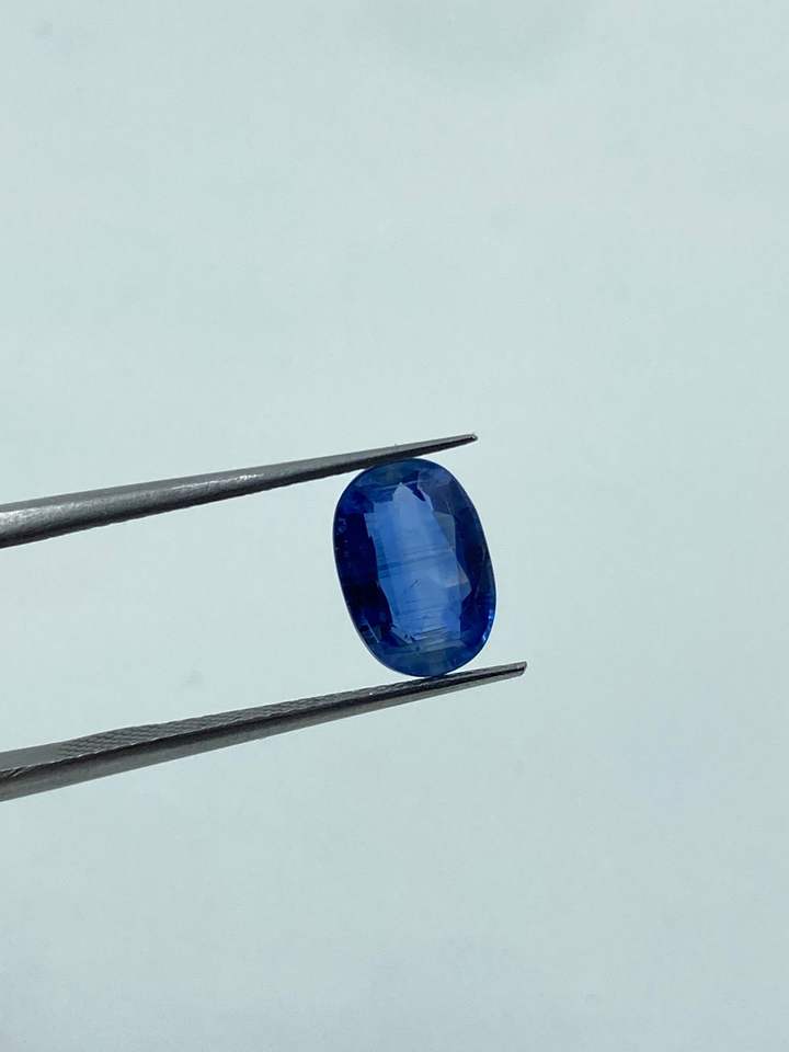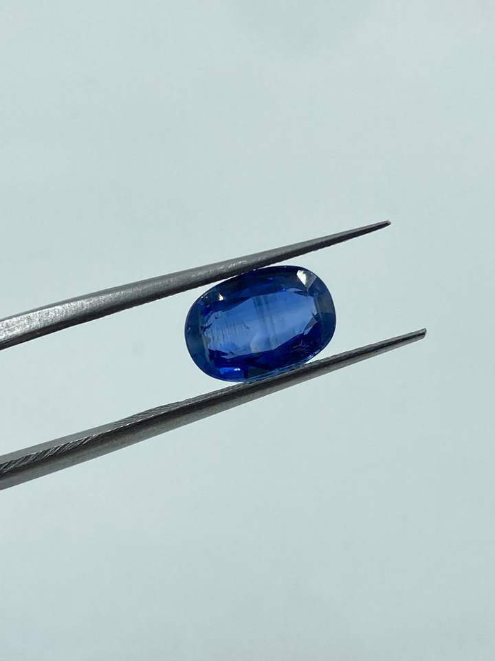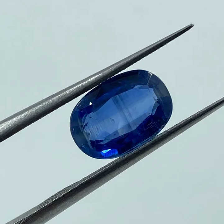 พลอยไคยาไนต์ธรรมชาติคุณภาพสูง สีน้ำเงินเข้ม รูปทรงวงรี ขนาด 7x10 มม. น้ำหนัก 2.70 กะรัต แบบเม็ดเดี่ยว สำหรับทำเครื่องประดับ