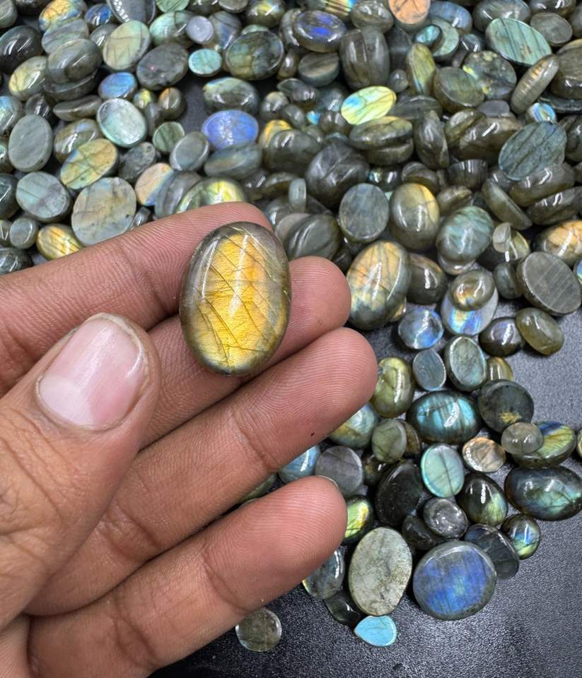 หินลาบราดอไรต์ธรรมชาติที่มีคุณภาพสูงอัญมณีหลวมหลายฉูดฉาดเรียบผสมทรงหลังเบี้ยฟรีขนาดเครื่องประดับทำทับทิมขายส่ง