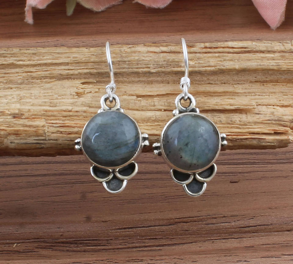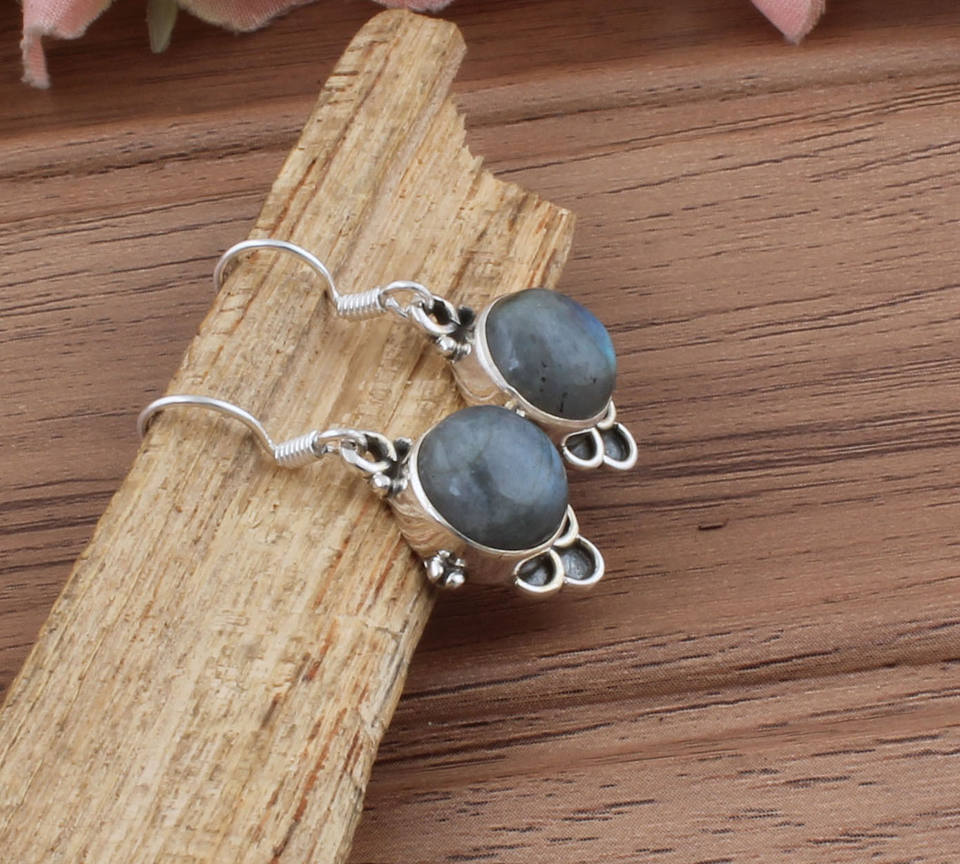 ต่างหูห้อยทรงหยดน้ำ ลาบราโดไรต์ธรรมชาติคุณภาพสูง เงินแท้ 925 งานแฮนด์เมด ประดับพลอยสีน้ำเงิน ราคาโรงงาน
