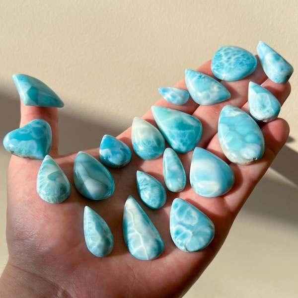 หินลาริมาร์อัญมณีสีฟ้าที่น่าตื่นตาตื่นใจในรูปทรงต่างๆขายส่งจำนวนมากสำหรับการใช้สร้อยคอ