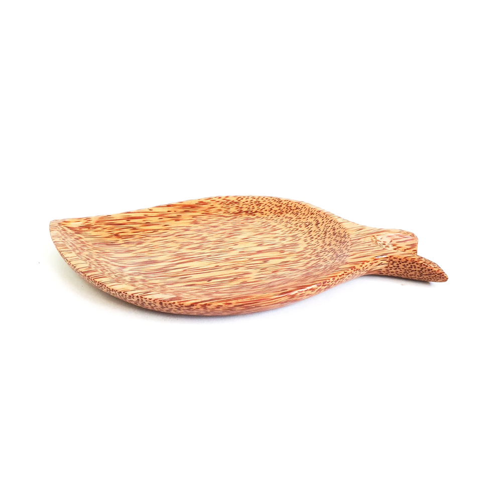 จานไม้กะลามะพร้าวรูปใบไม้
