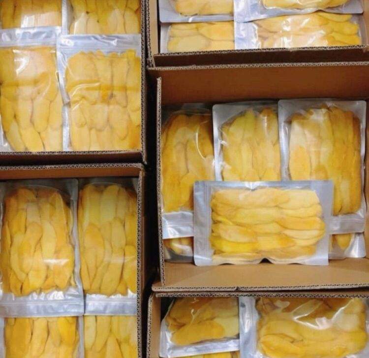 มะม่วงอบแห้งแบบนิ่มหั่นบางๆจากเวียดนามพร้อมน้ำตาล1กก. ถุงผลไม้แห้ง