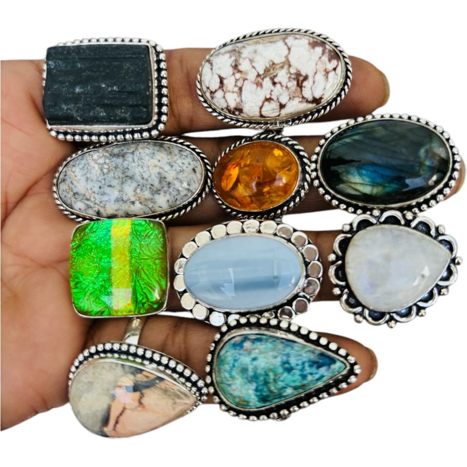 ชื่อผลิตภัณฑ์:แหวนทองเหลืองชุบเงินอัญมณีผสมธรรมชาติ