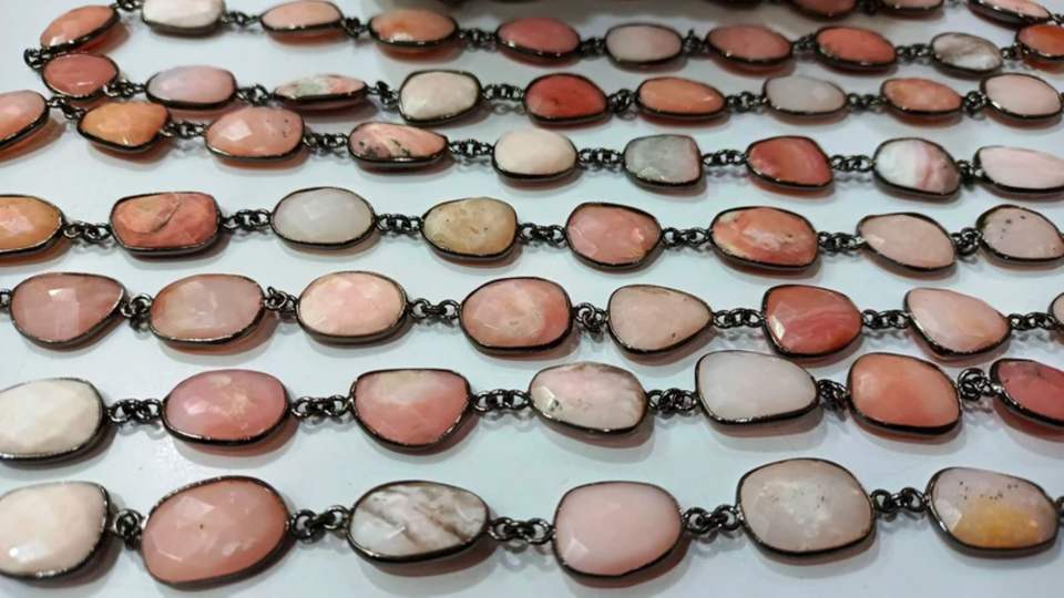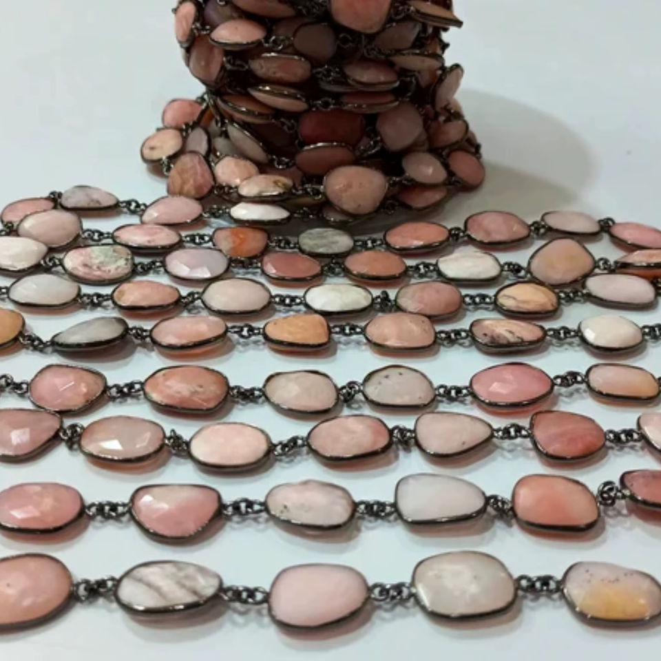 สร้อยเชื่อมต่อแบบโซ่ขนาด13ถึง16มม. ทำจากทองเหลืองบริตสโตนอัญมณีสีชมพูธรรมชาติคุณภาพสูง