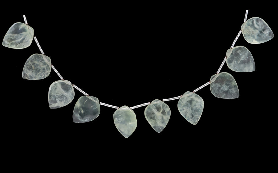 ลูกปัดหินพรีไนท์ธรรมชาติลูกปัดเหลี่ยมสีเขียวขัดเงาลายลูกแพร์สำหรับทำเครื่องประดับ