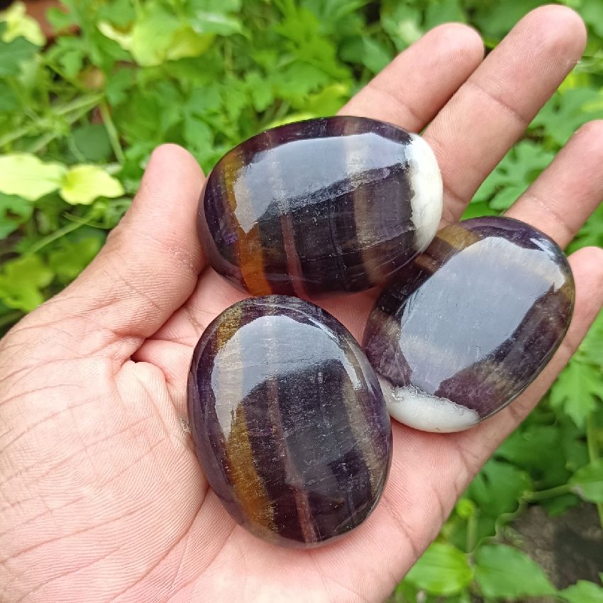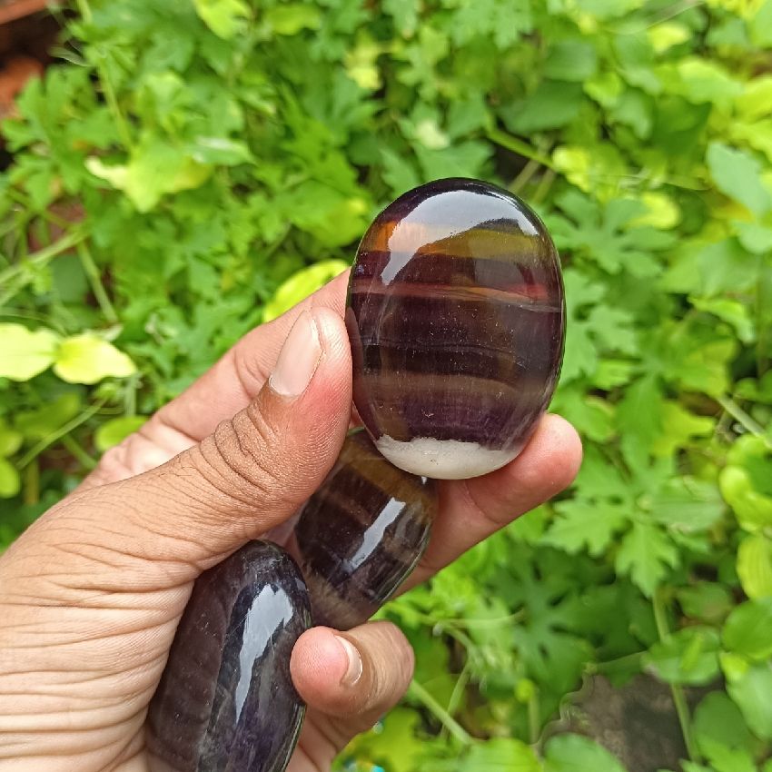 หินปาล์มฟลูออไรต์สีรุ้งธรรมชาติหินหลายเม็ดหินปาล์มฟลูออไรต์สีเขียวม่วง