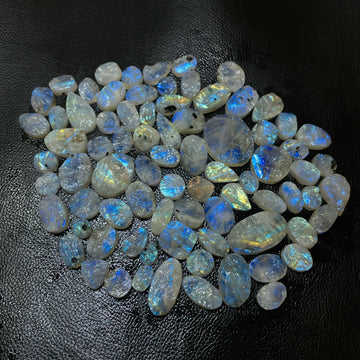 หินอัญมณีทรงหลังเบี้ยทรงหลวมรูปพระจันทร์สีรุ้งตัดทรงรีความสูง3มม. สินค้าคุณภาพสูงจากธรรมชาติ