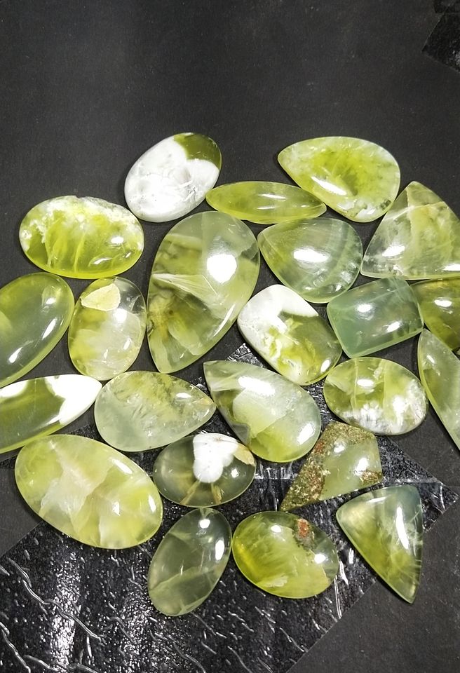พลอยเพรนไนต์สีเหลืองธรรมชาติคุณภาพสูงจากราชสถาน รูปทรงคละแบบ น้ำหนักเบา สำหรับทำเครื่องประดับ