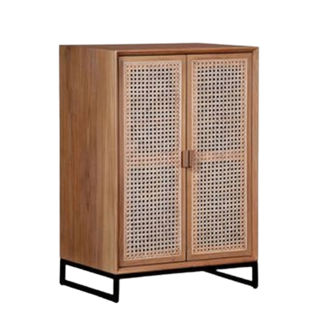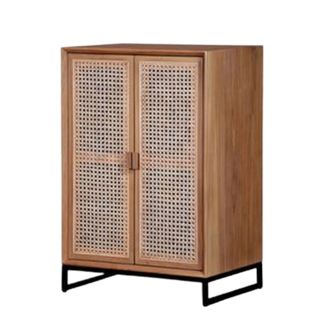 ตู้หวายธรรมชาติสองประตูวัสดุไม้สักสำหรับเฟอร์นิเจอร์ห้องรับแขก