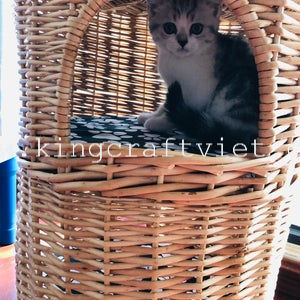 โซฟานอนหวายธรรมชาติสำหรับสัตว์เลี้ยงดีไซน์สองชั้นระบายอากาศได้ดีปรับแต่งขนาดได้เองสัตว์ขนาดเล็กสัตว์น้อยสัตว์เวียดนาม