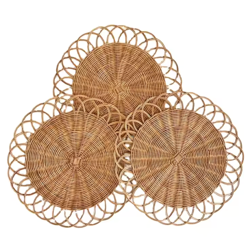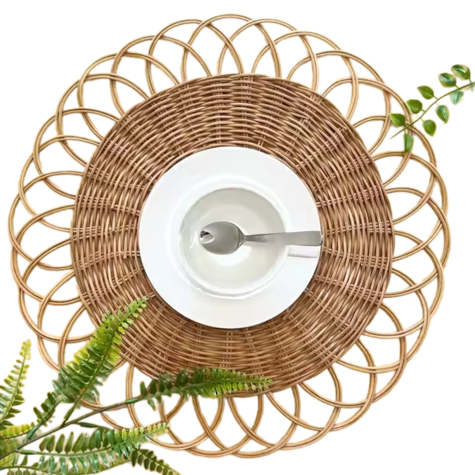 แผ่นหวายหวายหวายธรรมชาติทำมือสไตล์คลาสสิกแผ่นดอกไม้ตกแต่งบ้าน FAD4แบรนด์ Tuyet Dung จากเวียดนาม