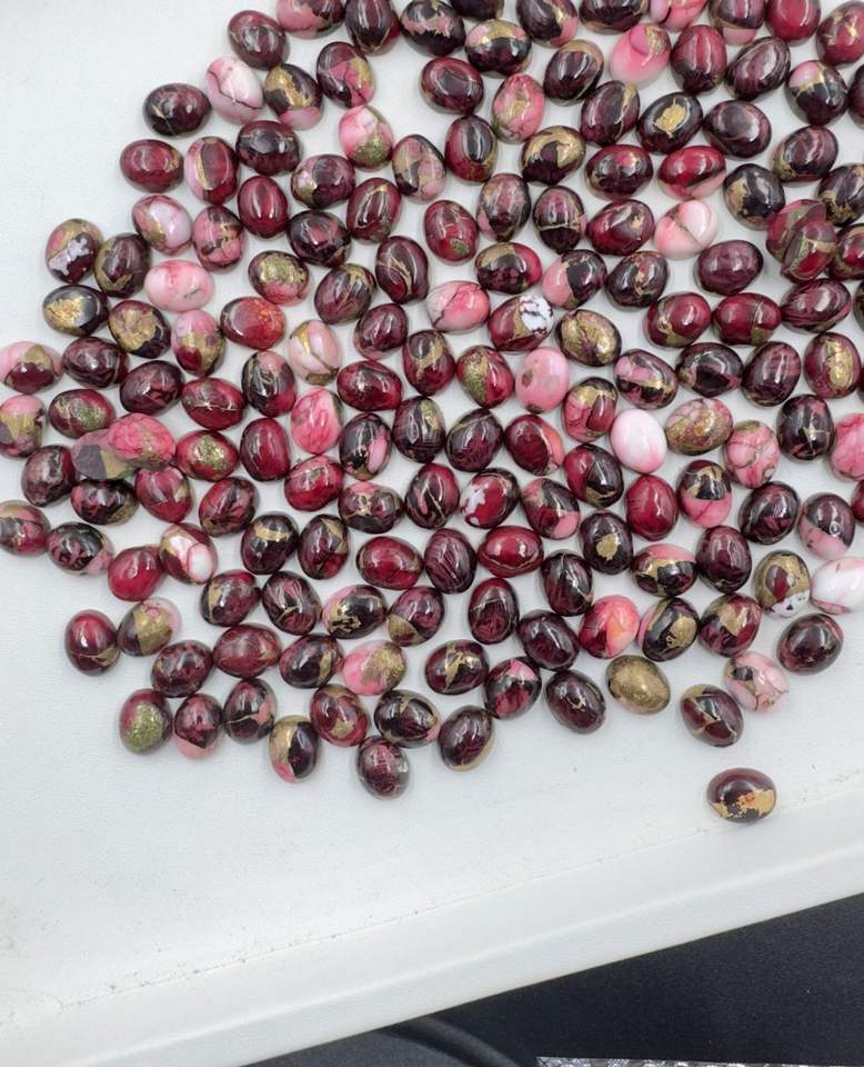 อัญมณีทรงรีทรงหลังเบี้ยทรงรีทรงหลวมลายกุหลาบแดงธรรมชาติสำหรับทำเครื่องประดับอัญมณีขายส่ง