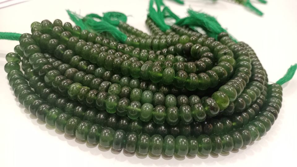ลูกปัดเซอร์เพนไทน์ธรรมชาติคุณภาพสูง รูปทรงรอนเดลล์ ขนาด 8 มม. สีเขียว คริสตัลเรียบ ยาว 8 นิ้ว 2 เส้น อัญมณ์ชั้นเลิศ