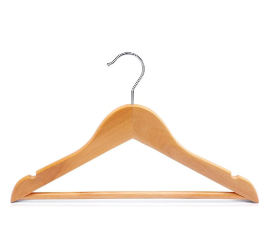 ไม้แขวนเสื้อสูททำจากไม้ธรรมชาติพร้อมบาร์กันลื่นที่แขวนเสื้อผ้าคุณภาพสูงสำหรับตู้เสื้อผ้าโรงแรมและห้องน้ำ