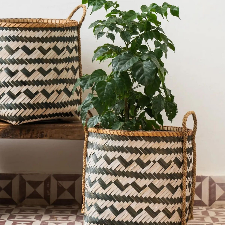 ตะกร้าสานมือสำหรับใช้ในครัวเรือน
