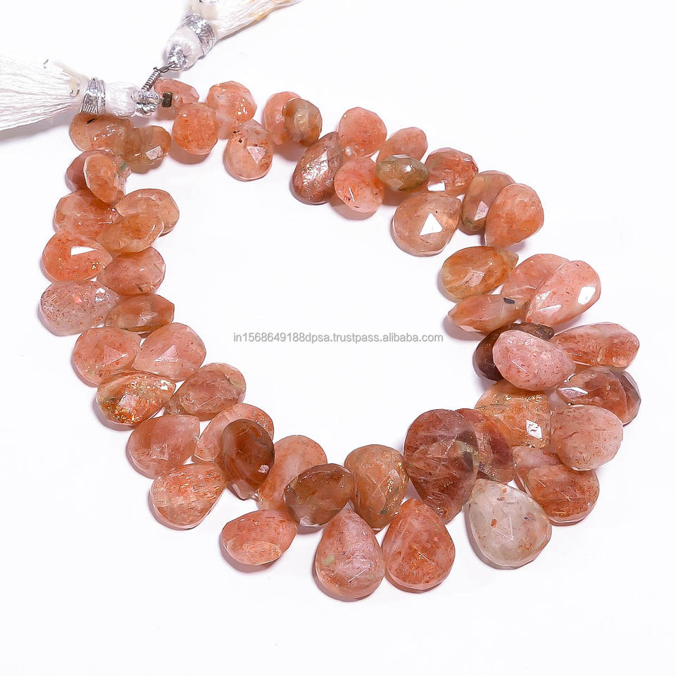 พลอยซันสโตนธรรมชาติคุณภาพพรีเมียมทรงลูกแพร์เจียระไน ขนาด 8 นิ้ว ความยาว 7x9 8x12 มม. สีส้ม สำหรับทำเครื่องประดับ ขายส่ง
