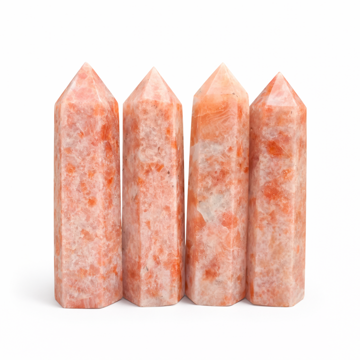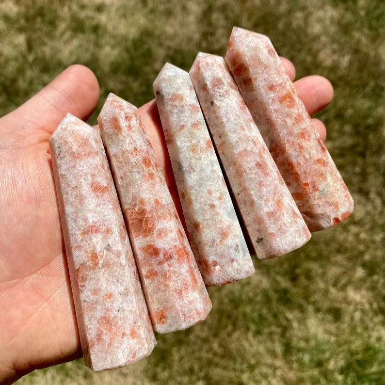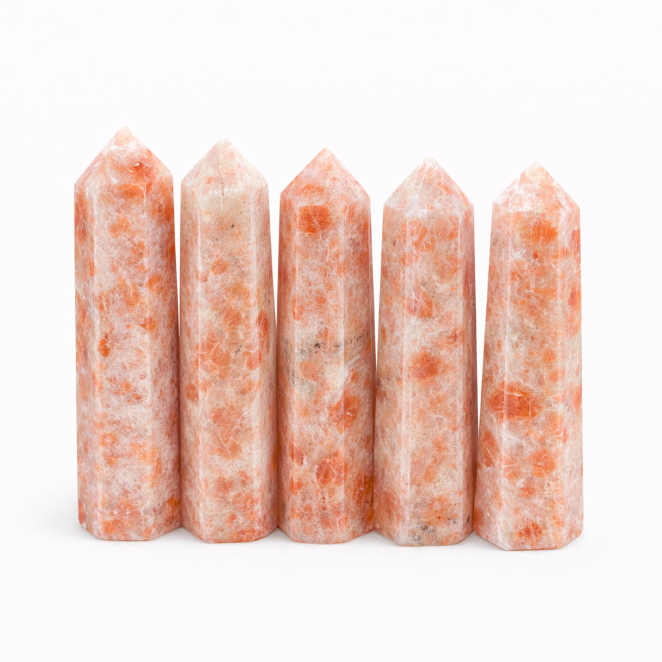 หินซันสโตนสีส้มธรรมชาติคุณภาพสูง รูปทรงโอเบลิสก์ ขัดเงา เป็นมิตรกับสิ่งแวดล้อม ขนาด 4 นิ้ว คริสตัลปลายแหลมสำหรับบำบัดรักษาแบบเรกิ