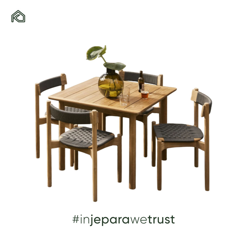 ชุดเก้าอี้รับประทานอาหารไม้สักธรรมชาติคุณภาพสูง 4 ตัว พร้อมโต๊ะรับประทานอาหารแบบพกพาเป็นมิตรกับสิ่งแวดล้อม ดีไซน์ยุโรปสมัยใหม่