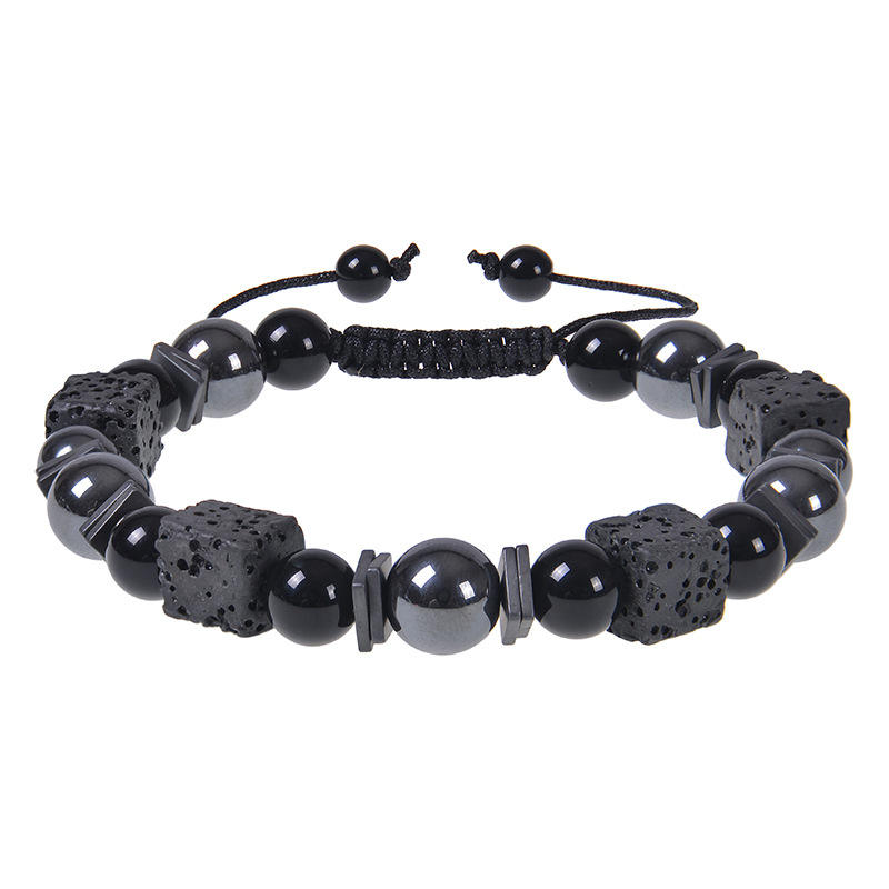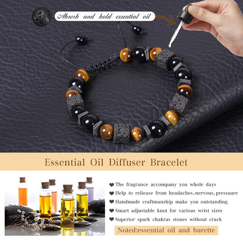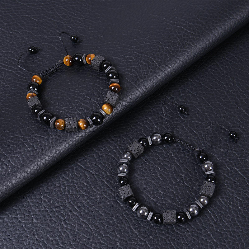 กำไลลูกปัดหินลาวาทรงสี่เหลี่ยมลายตาเสือธรรมชาติสำหรับผู้ชาย