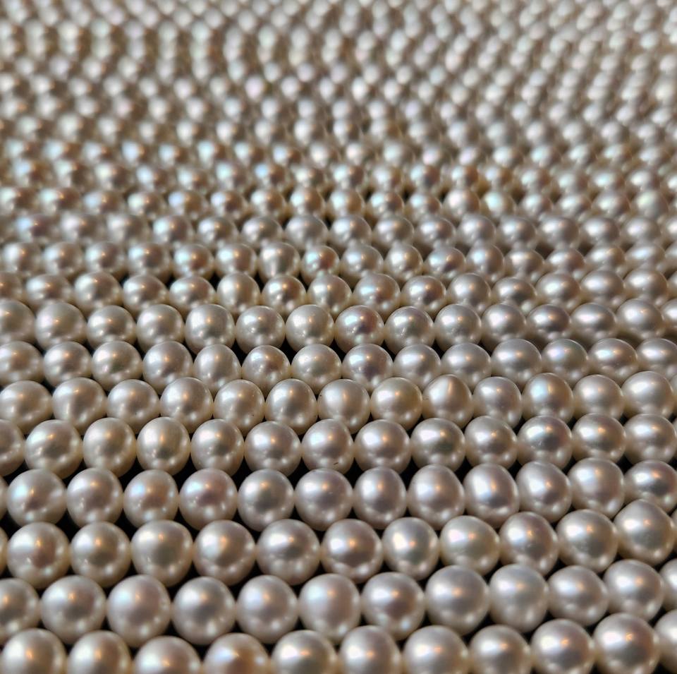 ลูกปัดไข่มุกน้ำจืดสีทองอินเดียสีขาวไม่ผ่านการบำบัดตามธรรมชาติคุณภาพสูงสำหรับการทำเครื่องประดับ