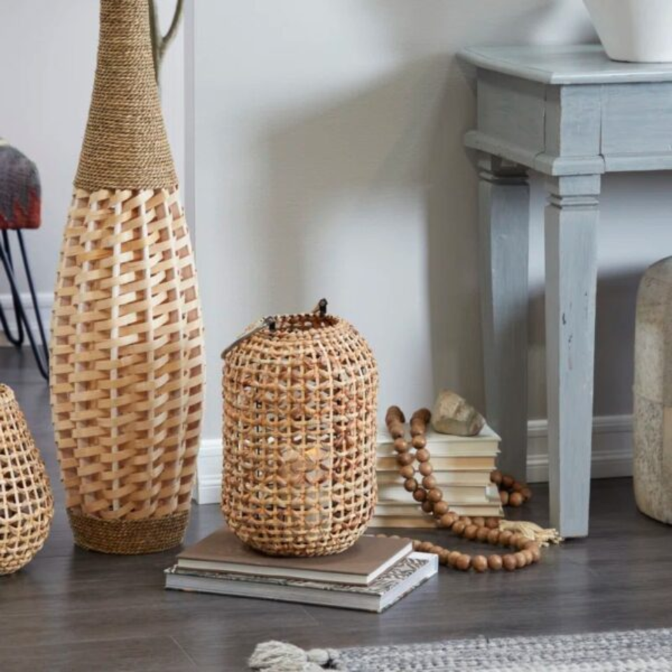 เชิงเทียนผักตบชวาธรรมชาติสานพร้อมกรอบโลหะสไตล์สวยสำหรับตกแต่งบ้านขายส่งจากเวียดนาม