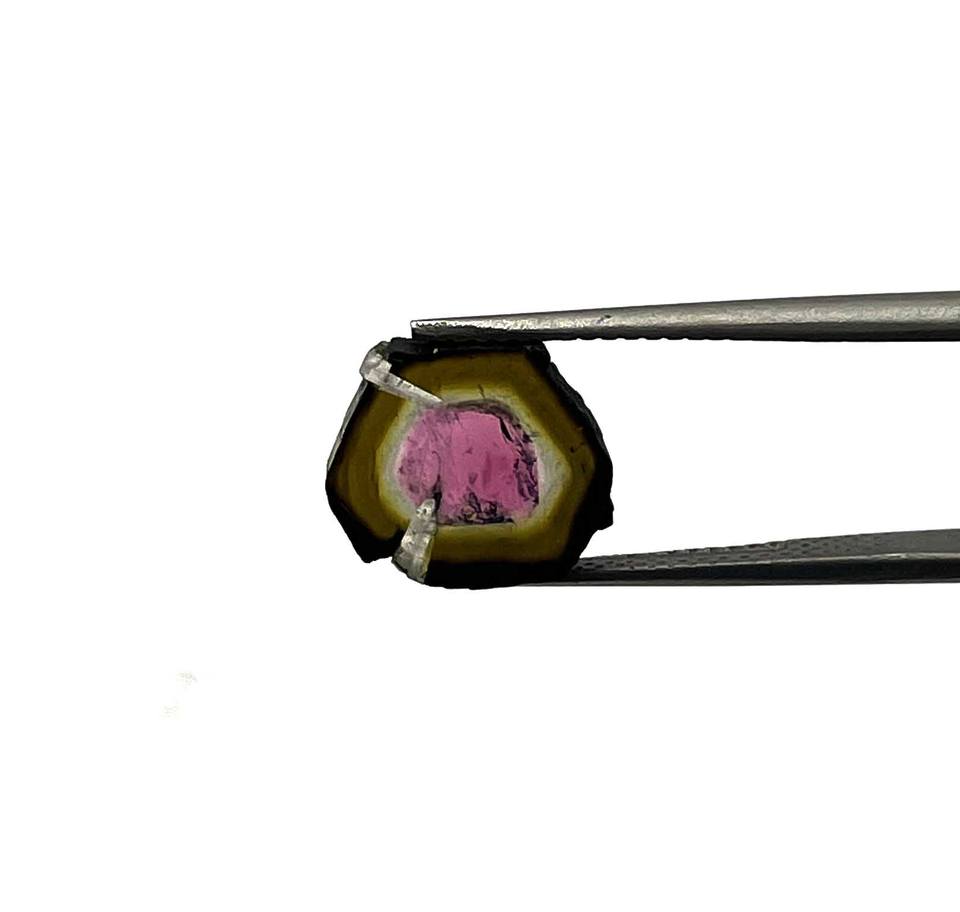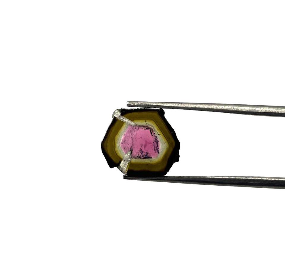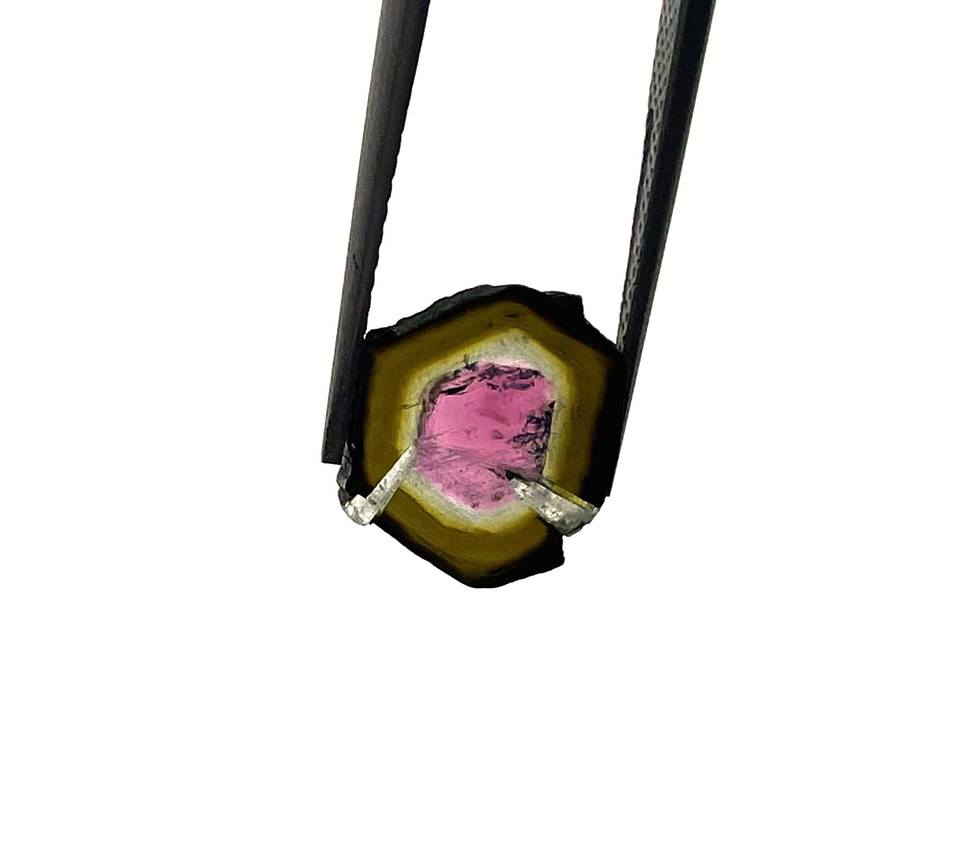 พลอยทัวร์มาลีนสีชมพูธรรมชาติคุณภาพสูง รูปทรงสไลซ์ ได้รับการรับรองจาก IGI ผ่านการอบความร้อน ทรงบริลเลียนท์ ประกายรุ้ง น้ำหนัก 100 กะรัต พลอยเม็ดเดี่ยว