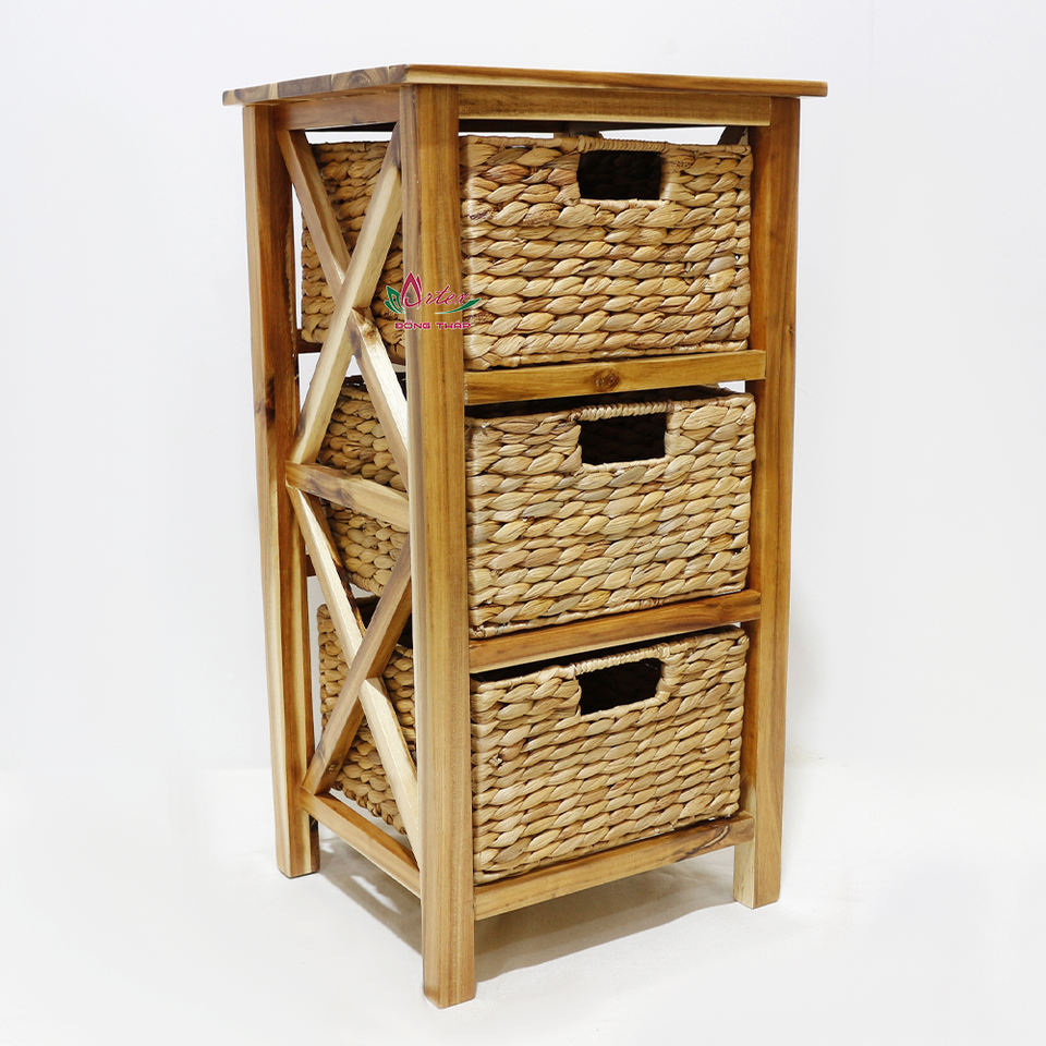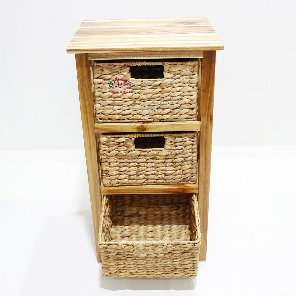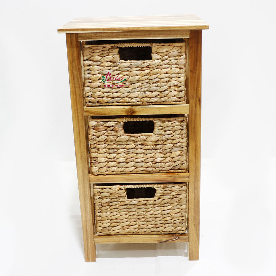 ตู้ไม้ธรรมชาติพร้อมตะกร้าสานผักตบชวา3ชั้นสำหรับจัดระเบียบบ้าน