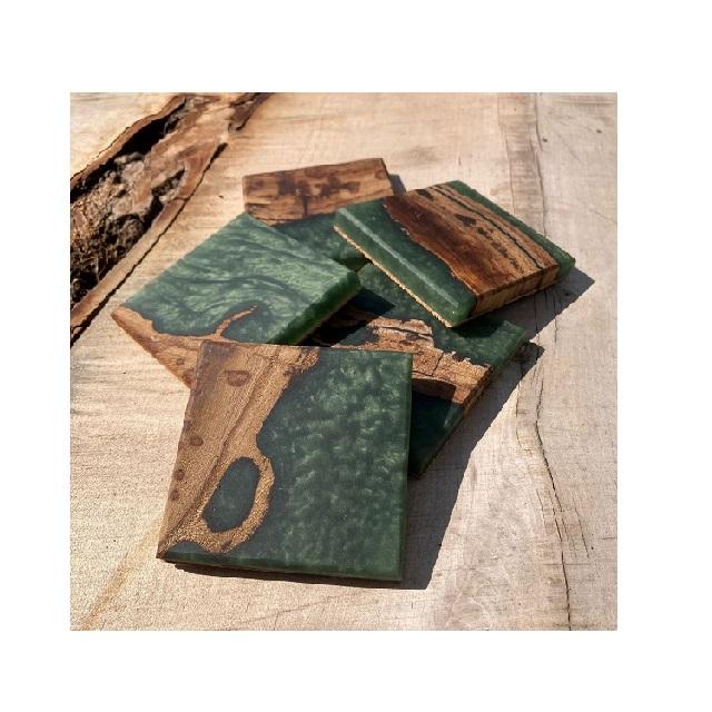 ที่รองแก้วทำจากไม้อีพอกซี่เรซินที่ไม่เหมือนใครแก้วไม้สี่เหลี่ยมสำหรับเครื่องดื่ม