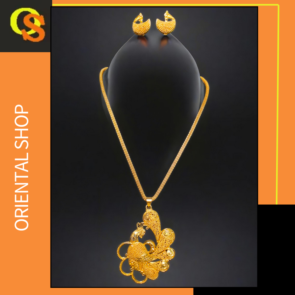 ชุดต่างหูสร้อยคอพร้อม22Ct สีทองชุดต่างหูสร้อยคอระดับพรีเมียมเครื่องประดับสำหรับผู้หญิง