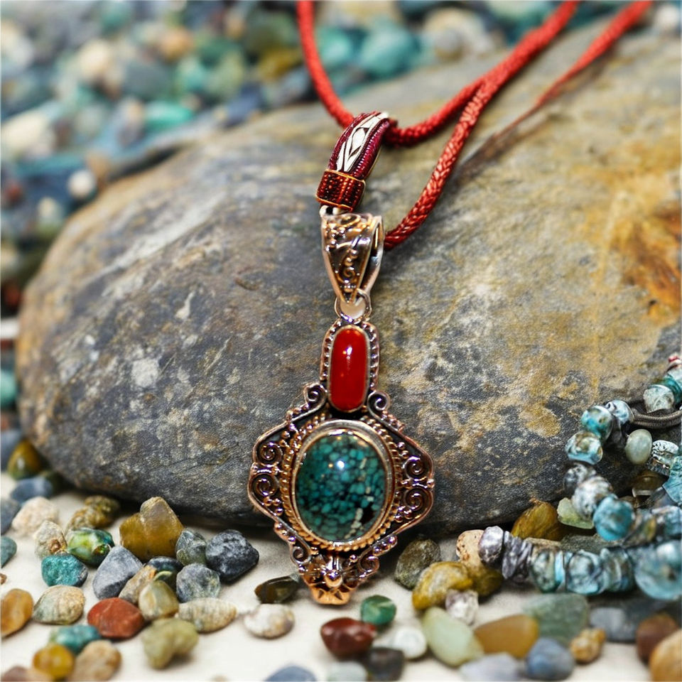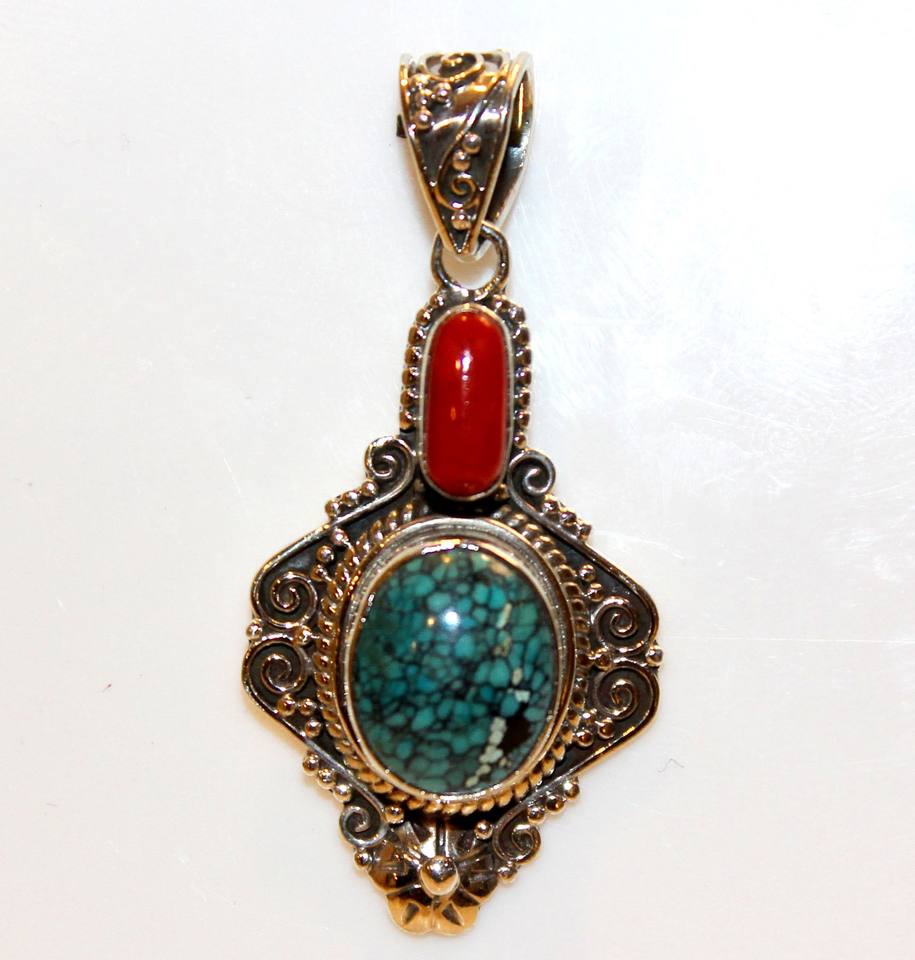 คุณภาพสูงเครื่องประดับเนปาลอัญมณีปะการังเทอร์ควอยซ์จี้925เงินแท้จี้หินคริสตัลบำบัด
