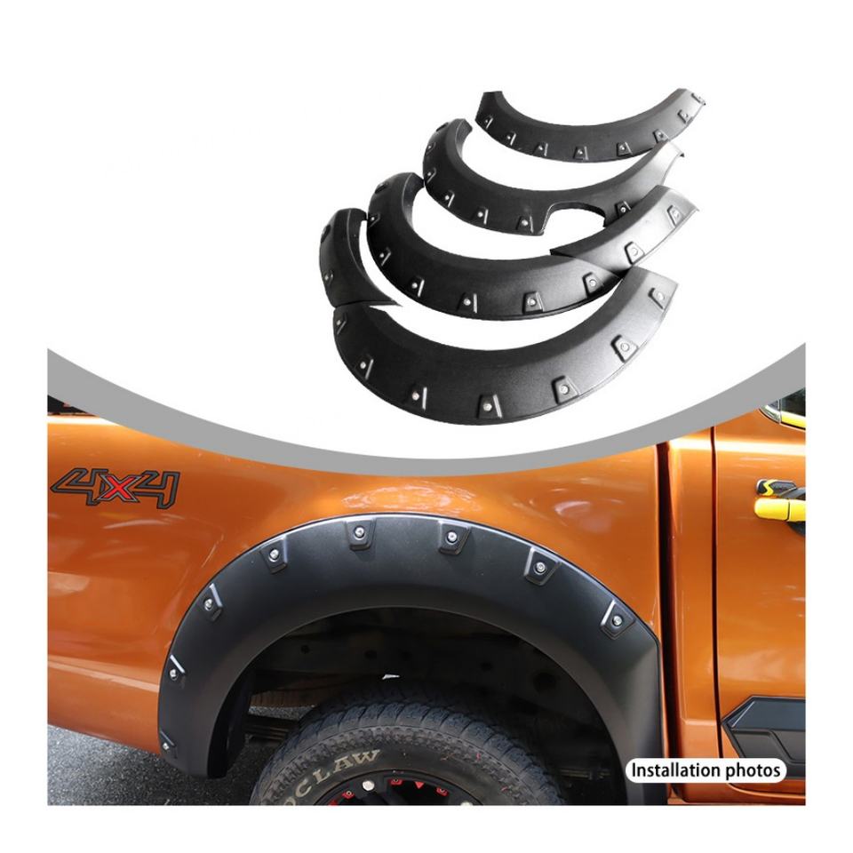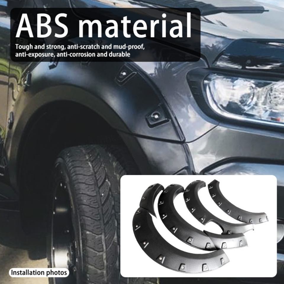 บังโคลนล้อรถยนต์คุณภาพสูง วัสดุ ABS สีดำ พร้อมรูยึดแบบรีเวท สำหรับรถฟอร์ด เรนเจอร์ ปี 2015-2023