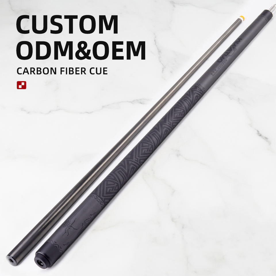ไม้คิวคาร์บอนไฟเบอร์คุณภาพสูงแบบใหม่ หัวคิวขนาด 11.5 มม./12.5 มม. ข้อต่อ 1/2 ด้ามคิวบิลเลียดคาร์บอน ขายตรงจากโรงงาน