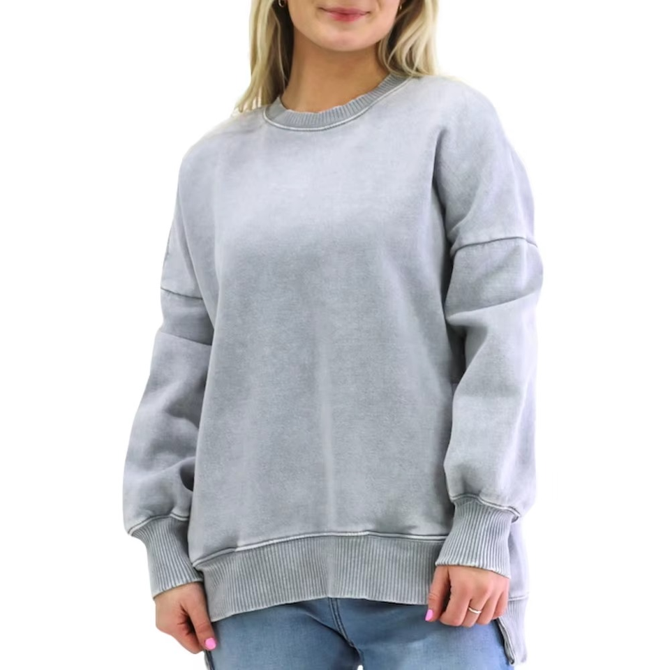 เสื้อสเวตเชิ้ตแขนยาวคอกลมทรงหลวมสีเทาอ่อนสไตล์คลาสสิกใหม่คุณภาพสูงสำหรับผู้หญิง มีกระเป๋าข้าง ดีไซน์ทันสมัย รับสกรีนโลโก้