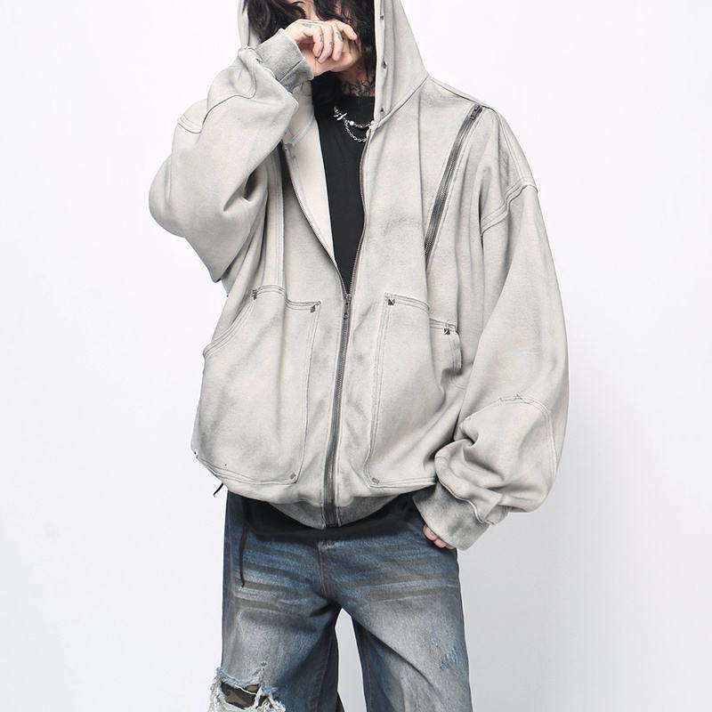 เสื้อฮู้ดผ้าเกล็ดปลาแบบมีซิปสำหรับผู้ชายและผู้หญิงเสื้อมีฮู้ดผ้าคอตตอนปักลายสไตล์ใหม่ดีไซน์100%