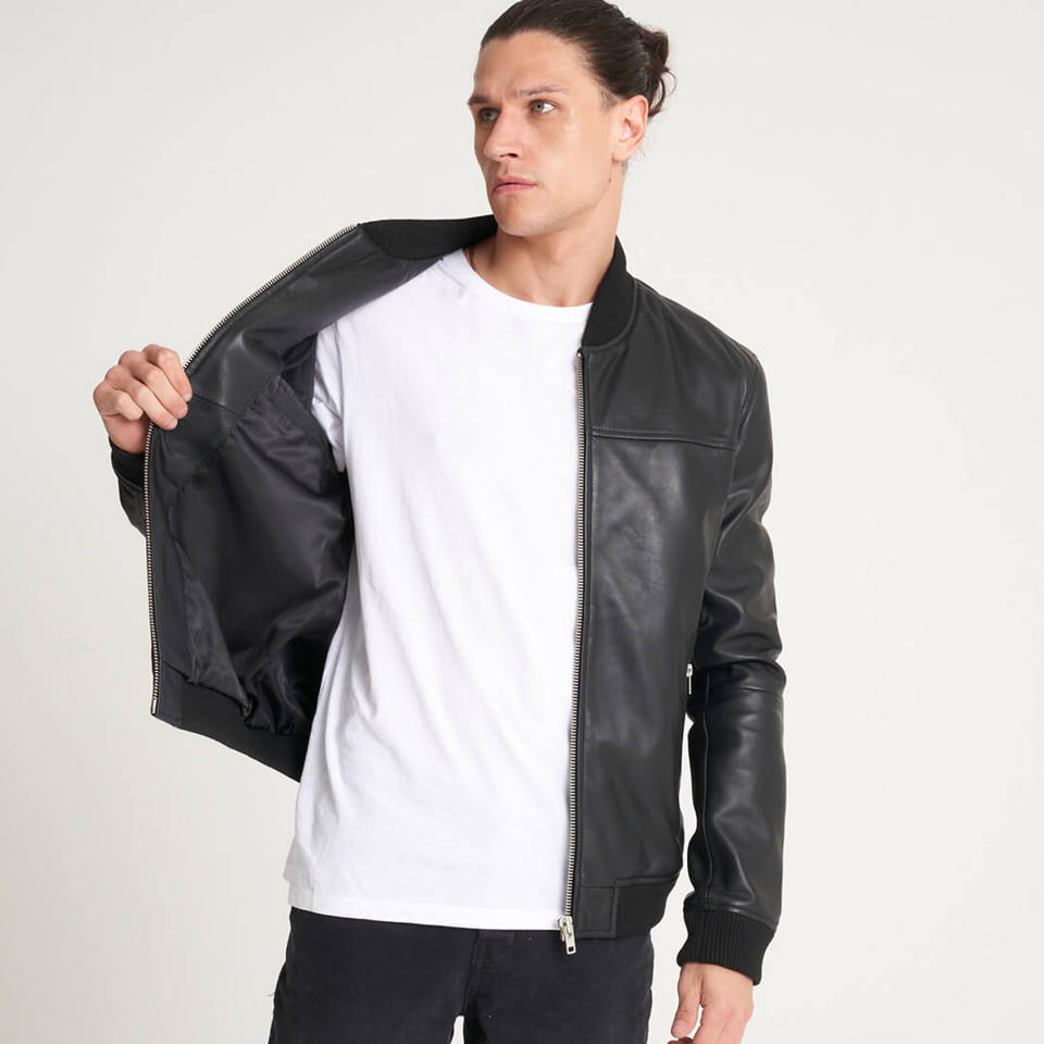 เสื้อโค้ทหนังแท้กันน้ำมีซิปดีไซน์ใหม่