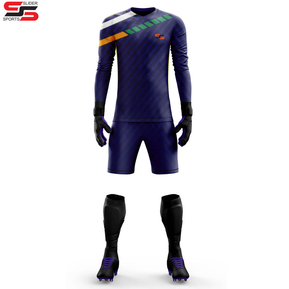 เสื้อฟุตบอลผู้รักษาประตูแขนยาวสำหรับผู้ใหญ่เสื้อเจอร์ซีย์ผู้รักษาประตูสำหรับผู้ชายดีไซน์ใหม่