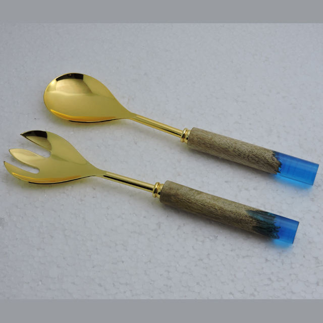 เซิร์ฟสลัดด้ามจับไม้และเรซินดีไซน์ใหม่พร้อมเครื่องมือสำหรับสลัดชุบทอง
