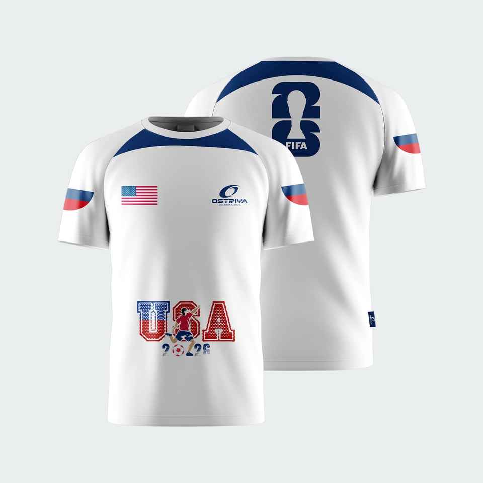 เสื้อแฟนฟุตบอลดีไซน์ใหม่คุณภาพสูงสำหรับทัวร์นาเมนต์ระดับพรีเมียมของสหรัฐอเมริกา ขายส่งแบบยูนิเซ็กซ์ คอกลม แขนสั้น แห้งเร็ว