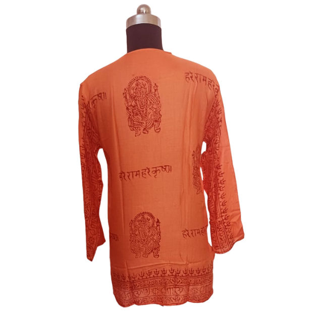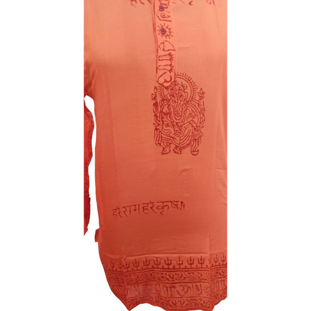 ผ้าคลุมไหล่สำหรับสวดมนต์แบบอินเดียคุณภาพสูง ใหม่ล่าสุด ขายส่ง ลาย OM AUM สไตล์เกาหลี แขนยาว พิมพ์ลาย OM สำหรับสวดมนต์ ชุดคุर्ตาพิมพ์ลายทางศาสนา