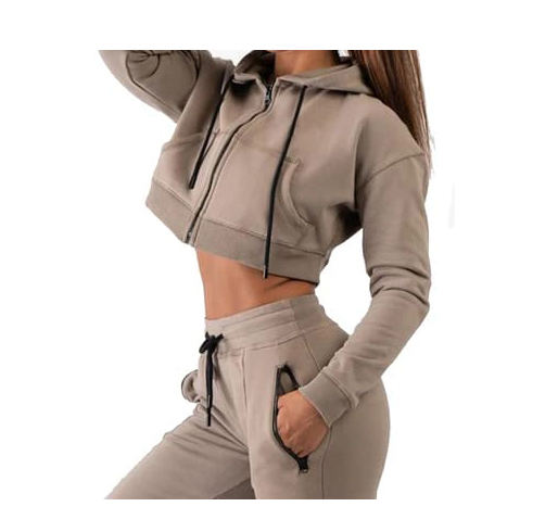 เสื้อฮู้ดแขนยาวสำหรับผู้หญิง,เสื้อครอปสวมหัวมีฮู้ดสไตล์ใหม่